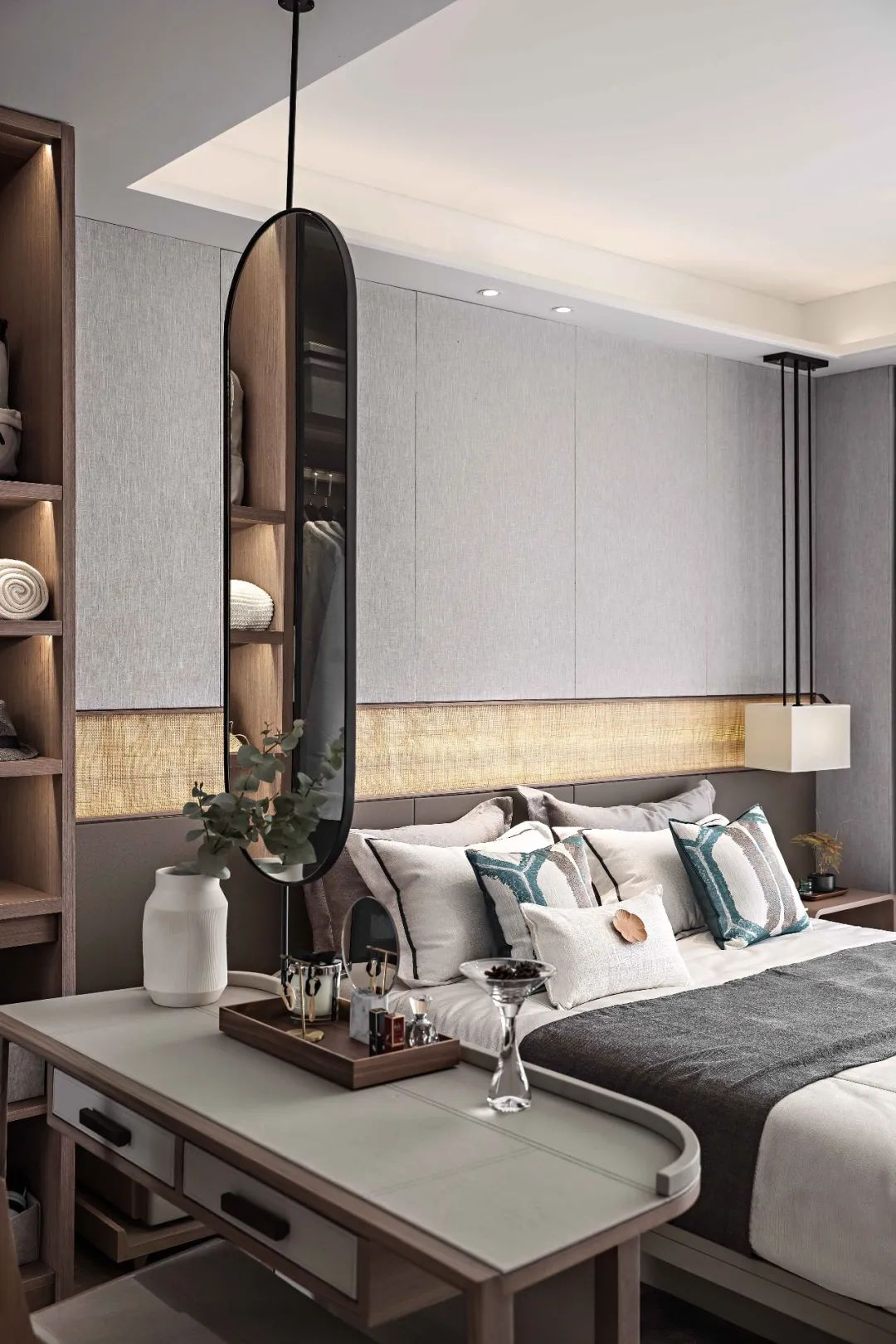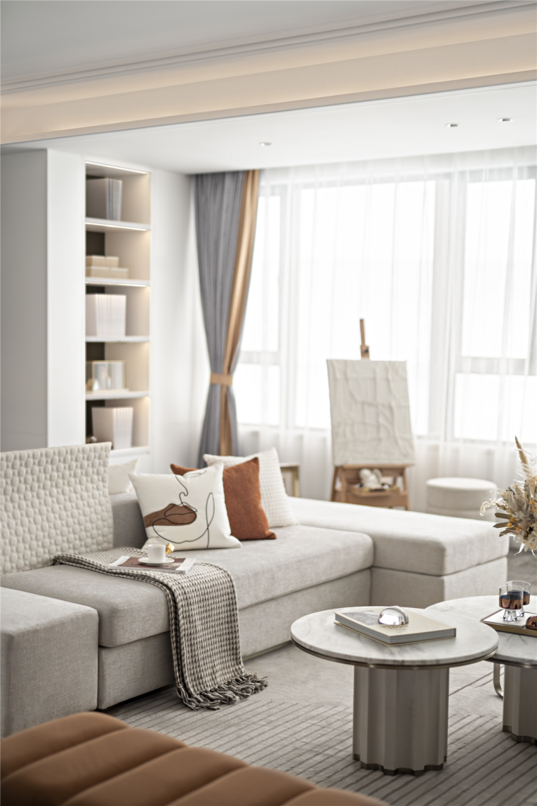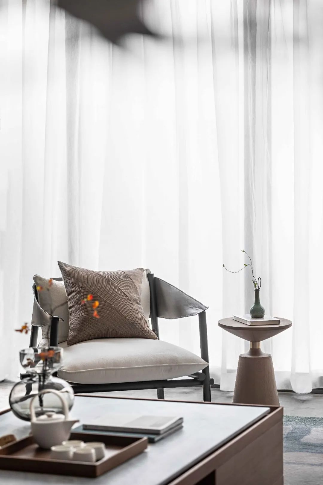 设计摒弃了浮华繁琐的肌理装饰,以纯净的霜色和简洁的线条铺叙,于细节处流露文人情怀,赋予空间古雅清惬的东方气息。