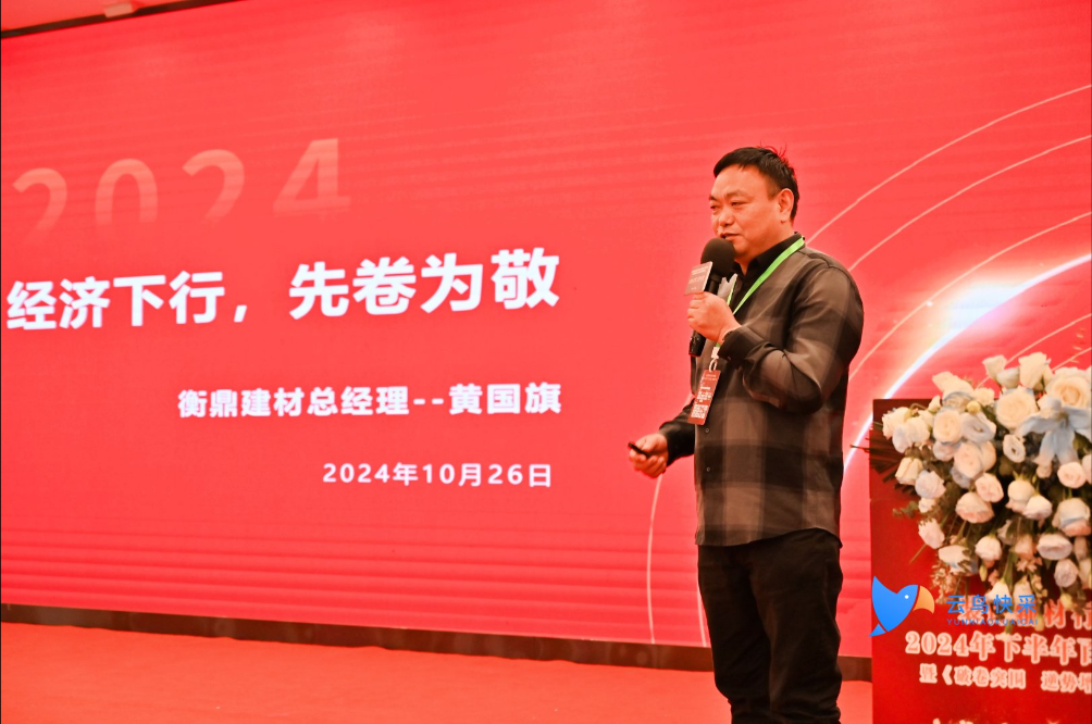 衡鼎建材总经理黄国旗分享《经济下行,先卷为敬》,提出了四卷一优的发展思路。