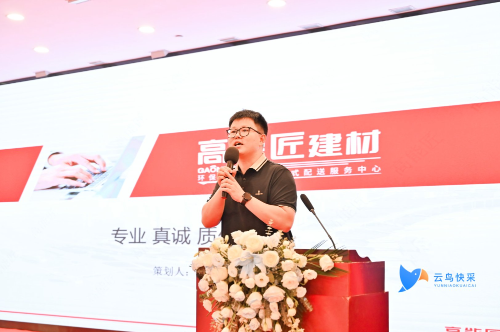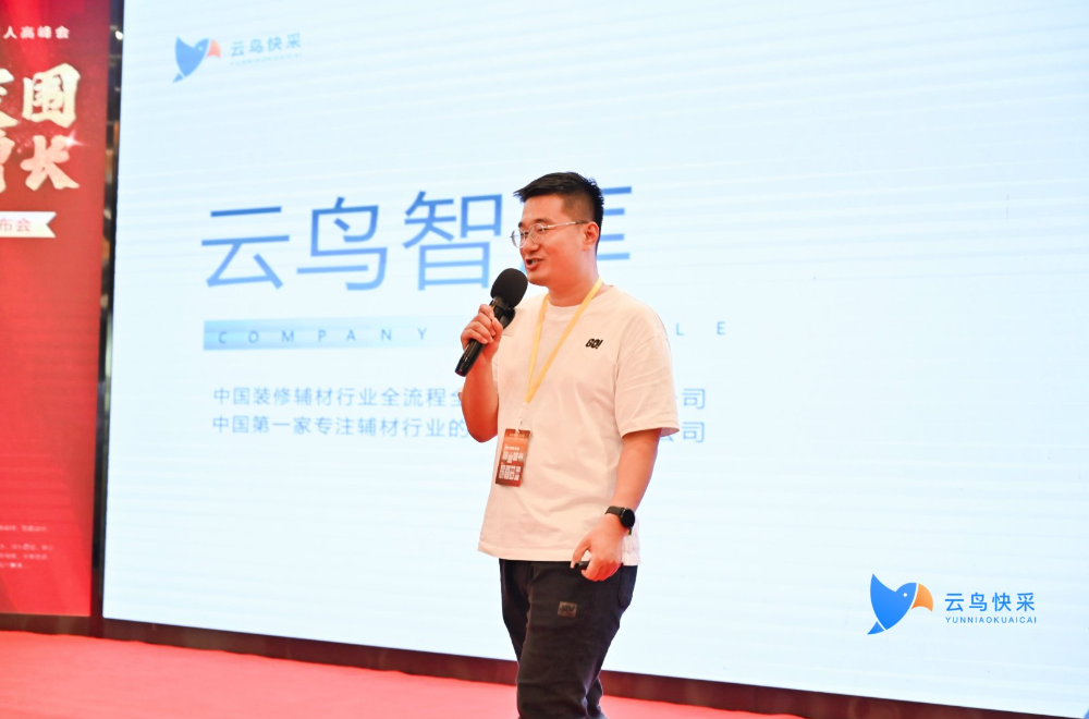 云鸟快采全案落地负责人王凯华发布-辅材商数字化转型一站式解决方案,提出辅材行业数字化转型已成必然趋势,发布了云鸟智库智慧赋能系统。