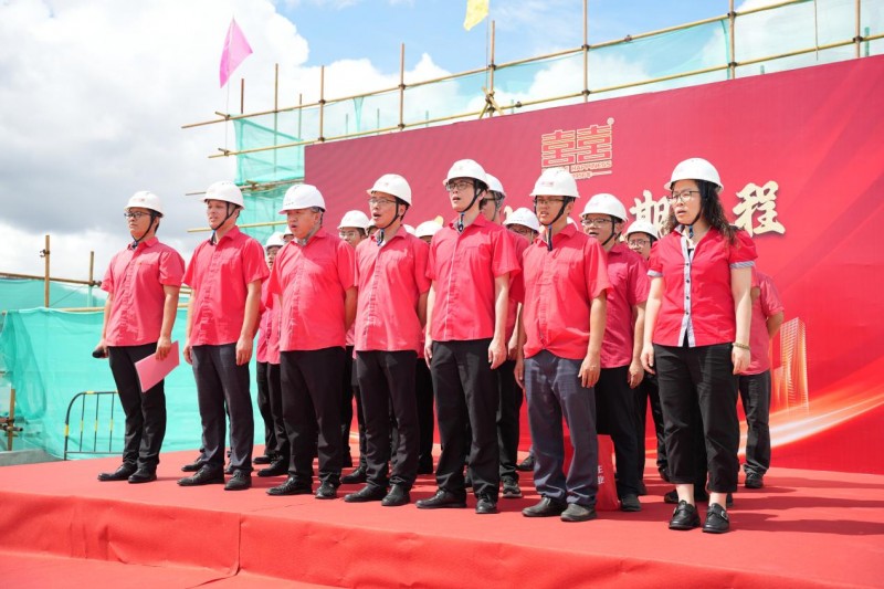 仪式进入封顶培土环节。双喜公司高管、施工单位负责人及监理代表共同移步培土区,在全场倒数声中一同为三期工程浇筑最后一方混凝土。礼炮齐鸣,现场掌声欢呼声交织,将仪式氛围推向高潮。这一方由众人携手浇筑的混凝土,不仅标志着三期工程主体的圆满完工,更象征着双喜电器智能发展迈入新征程。